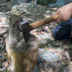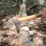 斧で薪を割る時、斧が途中で挟まってしまう場合もあります。簡単に抜けるなら心配はないのですが、抜けない時には焦ります!