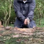 やり方は簡単です。薪の中央にナイフの刃を当てて、ナイフの背を他の木で叩いて割っていきます。これを、バトニングと言います。