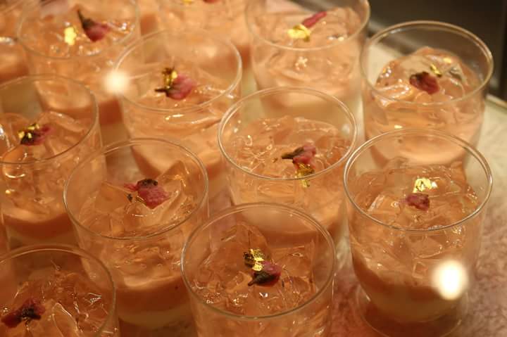 洋の食材であるマスカルポーネチーズと和の食材の白あんを重ね、その上に透明のゼリーと桜の花をのせた和洋折衷のスイーツです。チーズとあんこ!?という驚きの組み合わせですが、ちょっとくせになる美味しさ。