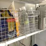 プラスチックの素材と比べ、多少の熱には耐えられるので、粗熱を取ったドライヤーや衣類用アイロンなどを片付けることも可能です。サイズによってはバスケット同士を重ねても使えます。例えば「18-1ステンレスワイヤーバスケット 4」は、平べったいタイプの「18-1ステンレスワイヤーバスケット 2」(1990円)と合わせて使うと収納の幅が広がります。ただし、その場合は下の段にものを重ねすぎると安定性がなくなるので注意しましょう。