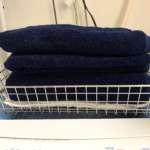 ▲「18-1ステンレスワイヤーバスケット 2」は約W37×D26×H8cm。タオルの収納にも役立つ