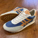 アッパーには、ピュアインディゴにてロープ染色で染め上げられた、鮮やかで深みのあるインディゴデニムを採用。さらにサンドカラーによるスエードのオーバーレイでクラシックなイメージも加わっています。