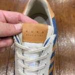 サイドのラインやシュータンラベル、ヒール上部には本ヌメ革を採用。
