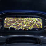 Tロックの運転席に座ると、ナビゲーションのマップを大きく映すこともできる全面液晶のメーターパネルがまず視界に入る。加えてインパネの中央には、表面をガラスパネルで覆った8インチのタッチパネルディスプレイを組み込むなど、先進的な雰囲気をさり気なく演出している。