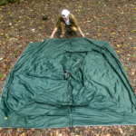 さっそくフライシートを広げます。フロアが正方形だとわかりますね。