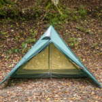 フライは240×240×H150cm。インナーのない場所にはソロ用テーブルなど大きめの道具だって置けます。インナーとフライは20cmほど隙間があるので、風で押されてもインナーとフライがくっつかないのも安心です。
