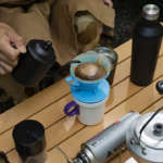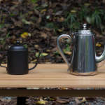 湯口に近い方のノズルが適度なカーブを描いているため、湯をコーヒー粉の中心に置くように落とせます。湯口の形状と軽量な本体のおかげで傾きをキープしやすく、点滴抽出も思いのまま。野外でじっくり抽出と向き合えます。