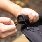 フレームを伸ばしたらシートのスリーブに差し込みます。スリーブは片側が閉じていて、反対側は写真のようにループが付いています。フレームを差し込んだらループを引っ張ってカバーすることで、フレームが飛び出ることがなくなります。