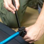 組み立てはまずシートに空気を入れることからスタート。マット同様、バルブを開き、空気を入れます。息を吹き込んでもいいですが、湿気が入るのでポンプを使うほうがいいかも。