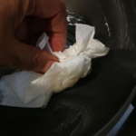 キッチンペーパーで全体に油をすり込みます。たったこれだけ! キャンプ場でもすぐできるほど楽ちんです。