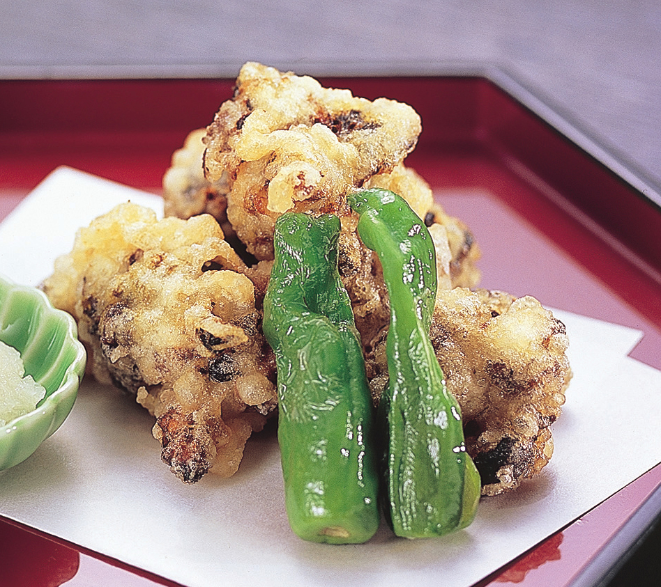 きも好きならぜひ味わってほしい一品「きもの天婦羅」。素焼きしたきもを天婦羅にしたもので、ほろ苦い味わいが絶妙。700円
