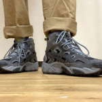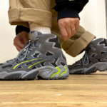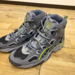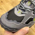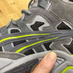 サイドは、リップストップ仕様のファブリックを下地にスエードやシンセティックレザーなどが使われたレイヤー構造。蛍光色のアクセントも加わり、ボリューミーで強い存在感を放っています。