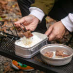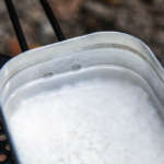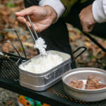 モチモチで粒立っている美味しいご飯が炊きあがりました。ムラもなし。そのまま器として使えちゃうのもメスティンの魅力で、アルミの無骨さがキャンプ映えしますね。