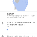 Pixel 4aにはないPixel 5だけのメリットとしてワイヤレス充電があります。従来モデルは、Qi規格のワイヤレス充電器から充電できる機能だけでしたが、新たに、ほかのデバイスに給電できる「電池の共有」という機能が追加されました。Pixel BudsなどのQi対応のワイヤレスイヤホンを、Pixel 5の背面に載せるだけで充電できます。Pixel Budsを持っていないので、ほかのイヤホンで試したのですが、問題なく充電できました。外出先でイヤホンの電池がピンチになっても安心ですね。