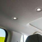 モダンリビングといえば、シートは形状、色使い、表皮の質感などにおいて、ソファ感覚の仕立て。また天井にダウンライトを組み込むなど、クルマらしさに縛られない発想が新しい。