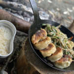 タークを使って感じたメリットは前述したように、熱伝導がとても高く、なんでもおいしく焼けること。取っ手が長いので、焚き火料理がしやすく、使わない時は、引っ掛けておける点もキャンプでは重宝します。