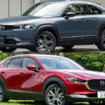 MX-30とCX-30のスペックは似通っている。基本骨格も全長も全幅もホイールベースも共通であり、スペック表を並べても大きな違いを見つけるのは困難だ。せいぜい全高が10mm違うぞとか、室内長が5mm違うぞとか、室内高が5mm違うぞとか、その程度。唯一違いらしい違いが、ドア構造の差からくる重量の違い(MX-30の方が60kg重い)で、それを除けばスペック的にMX-30とCX-30はほぼ同じといっていい。