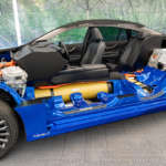 新型ミライは、電気を起こす燃料電池スタック、水素タンク、バッテリー、モーターなど、すべてのユニットが刷新されている。中でも、2本から3本に増えた水素タンクは容量が4.6kgから5.6kgへと増え、燃料電池スタックは小型化と高効率化を達成。またバッテリーは、ニッケル水素からリチウムイオンとなり、モーターも高出力化によって動力性能が向上している。