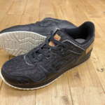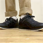 おなじみのアシックスストライプはデニムと同色のレザーになっていて、さり気なくも存在感を醸し出しています。