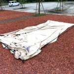 反対側には260cmのポールを立てると完成! おおお、デカい! デカすぎる! これは家族4人でも使い切れないほどのスペースだ。ハッキリ言って、区画サイトだと前もって広さを調べておかないと入らない可能性大。フリーサイトなら、心置きなく設営もできそう。