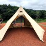 脱初心者にちょうどいいというか、基本構造がワンポールテントなので難しい部分は特になし。重さだけ気にしなければ、ガシガシ使える優秀なテントだと思います。中央部は天井まで270cmあり、中で大人が立てる高さなのもいい。ただ、台座とか三脚がないと吊り下げ式のインナーテントを引っ掛ける高さに手が届かない可能性もあるので、ここは注意です。