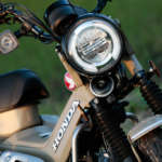 その一方、ヘッドライトやメーターを、イメージを崩さない丸形にデザインしながらLEDや液晶画面を採用して現代風としている点も見逃せない。1980年代のCT110を意識した前後の四角いウインカーもLEDタイプです。