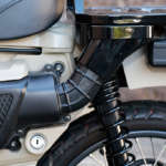 ハンターカブの使われ方を考慮して強化されたバックボーンフレームに搭載されるのは、穏やかなパルス感が印象的な空冷単気筒エンジン。67.2km/L(カタログ記載のWMTCモード値)という驚異的な燃費を誇る上、タンク容量がスーパーカブC125の3.7Lから5.3Lに拡大されているのも、ツーリング時に心強い。124ccの排気量から8.8馬力/7000回転の最高出力と1.1kgf-m/4500回転の最大トルクを発生。クロスカブ110と比較するとトルクが太く、14kg重い120kgのボディを過不足なく運びます。アクティブなイメージが強いハンターカブですが、そのライドフィールは意外と落ち着いたものなのです。