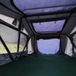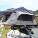 「ルーフトップテントは屋根に固定しているのではなく、ベースキャリアに専用金具で止めています。だからキャリアと同じ扱いで、基本的に装着したまま車検を通せます」