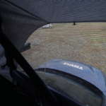 カバーを外して屋根の上にあるラダーを引っ張り出し、ぐいっと地面に向けてラダーを下ろすとテントがほぼ垂直に。