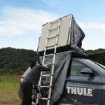 「ルーフトップテントに乗り降りするためにはラダー(はしご)が必要です。このラダーが柱の役割も担っていて、テントや上に乗った人の荷重がクルマとラダーに分散されます。スーリーのラボではキャリア、テントともに試験を行っていて、ベースキャリアの最大積載量の3倍まで利用できるとしています。『スーリー テプイ エクスプローラー』シリーズを載せるには最大積載量75kg以上のクルマであることが条件になります」