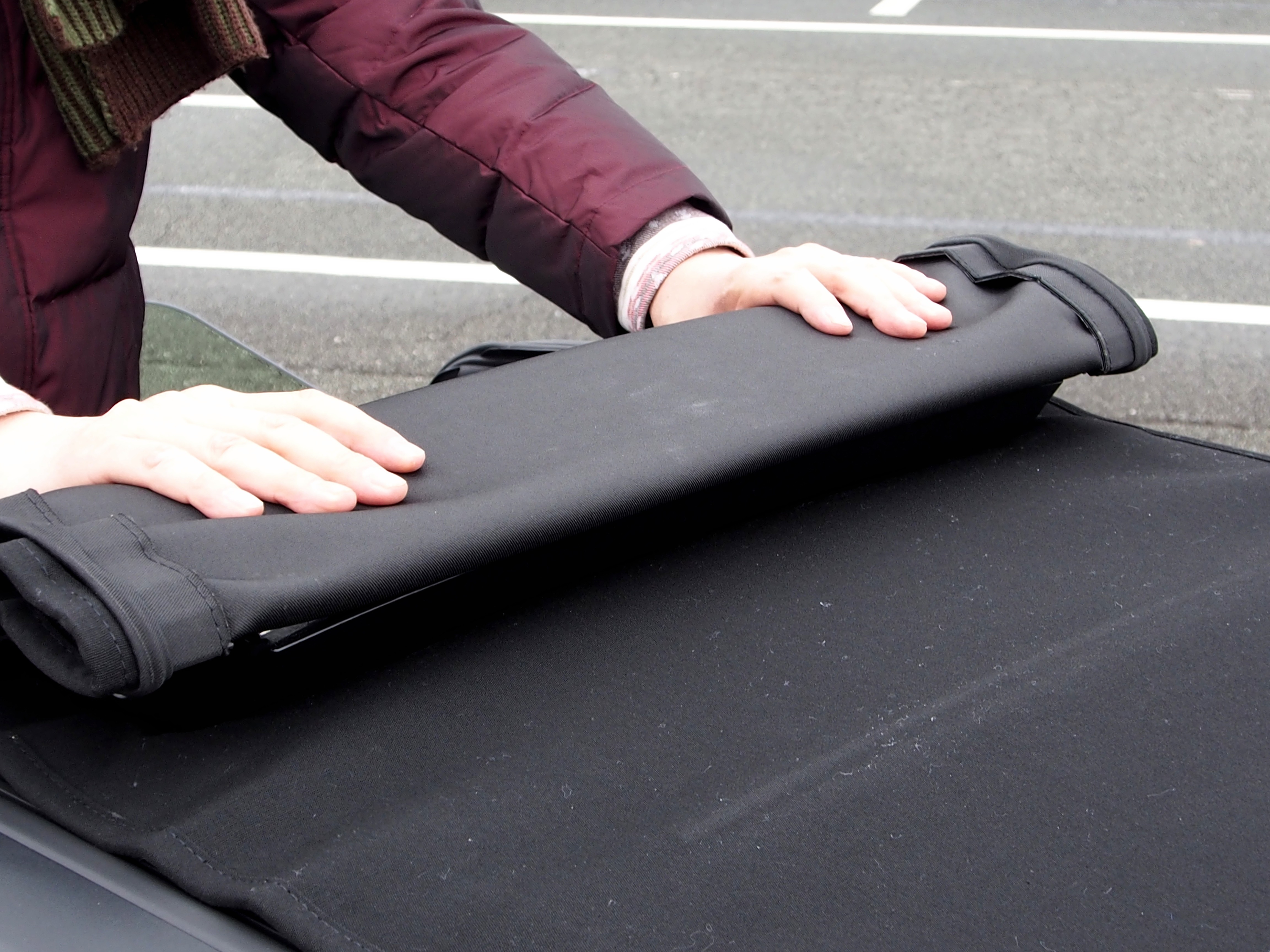 巻いたルーフはフロントのトランクに。ボンネットは片手でも開けやすいようダンパー式です