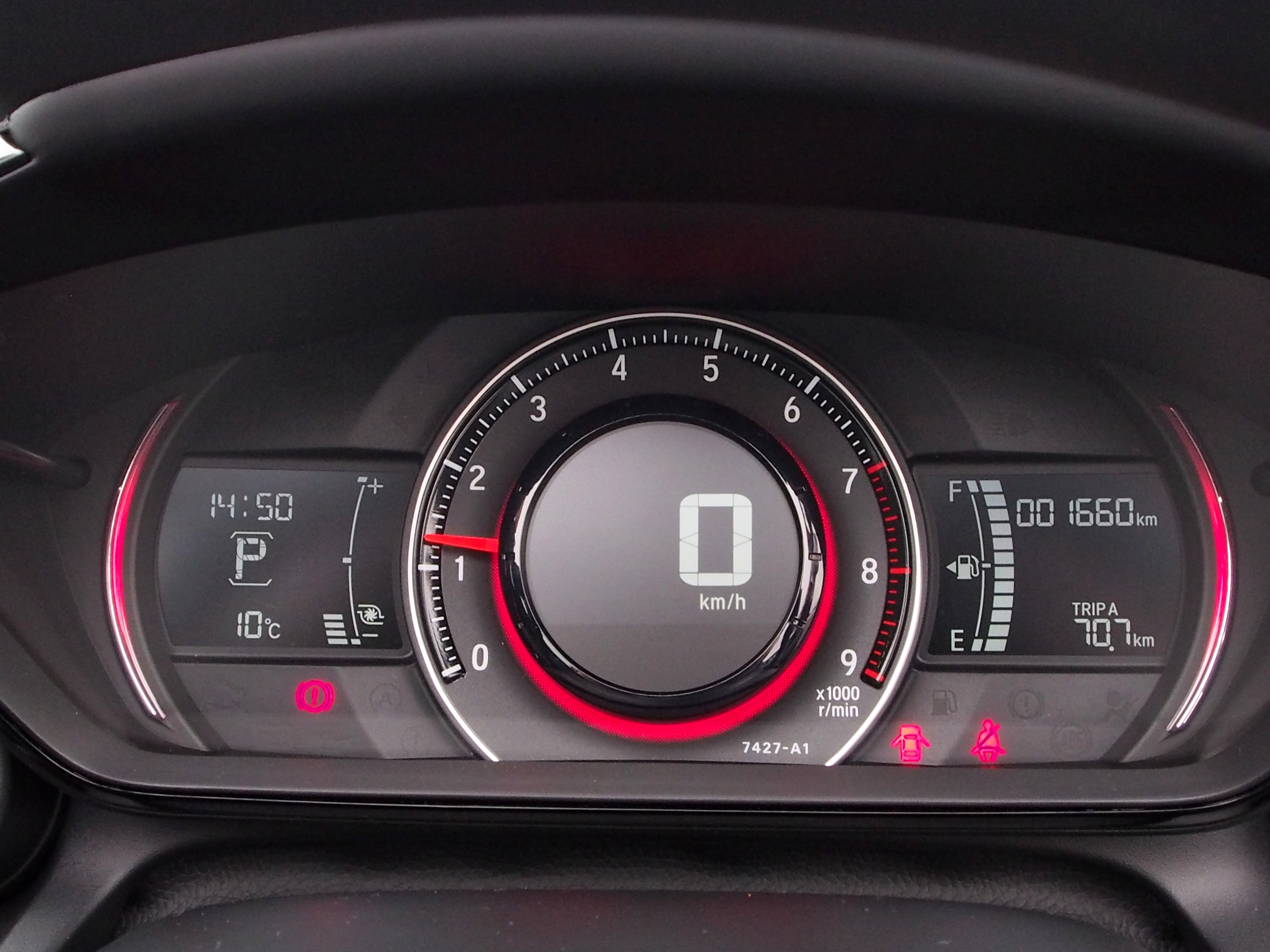 CVT車でPOWERスイッチをオンにするとメーター内が赤く点灯すると同時に瞬間燃費系がターボブーストメーターに変化します