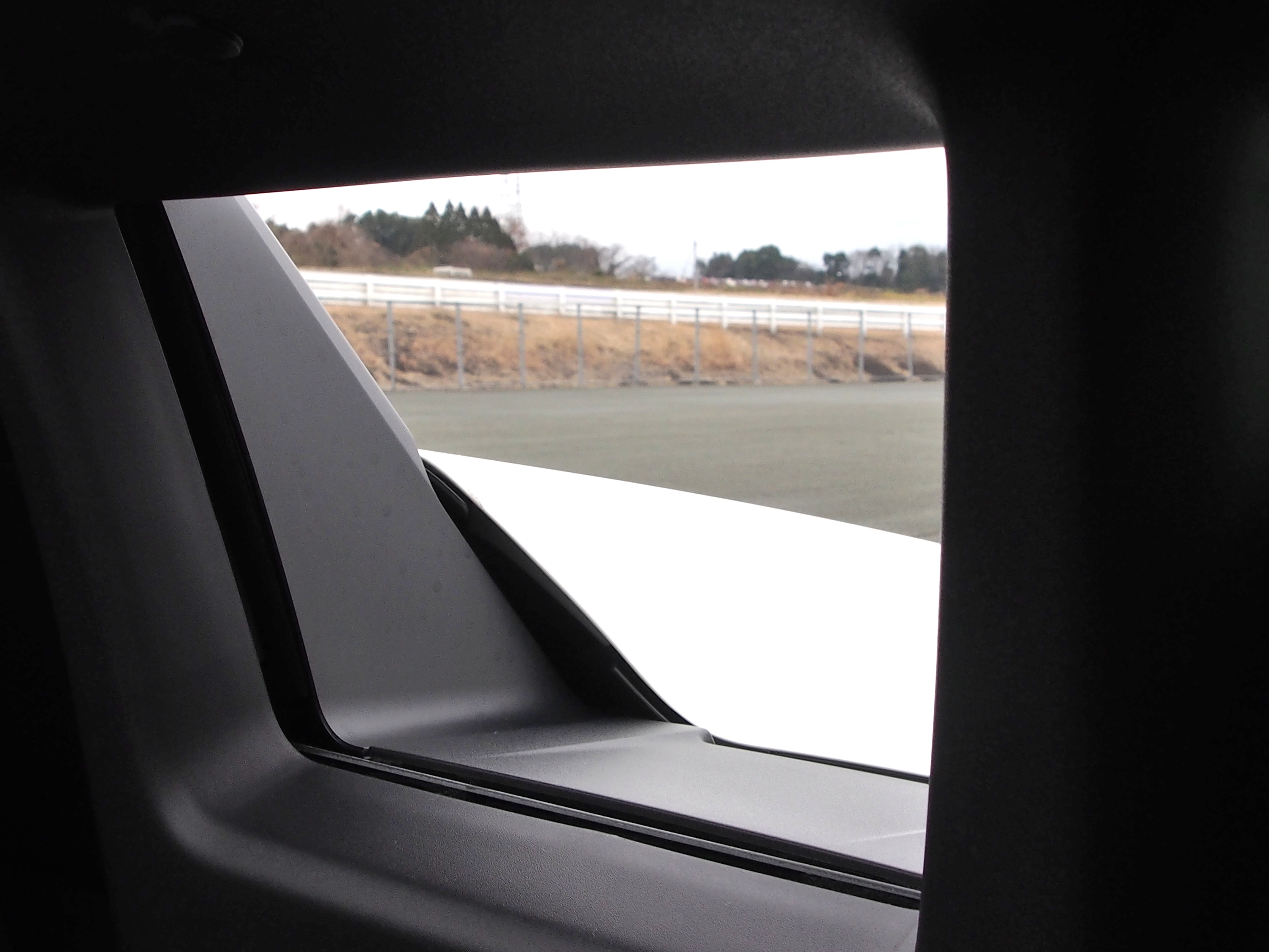 パワーリアウインドウを開けることでオープンならではの気持ちよさが増します。ただ視界に入らない部分なので降車時の閉め忘れに注意。開けっ放しでクルマから離れてしまったときに雨が降ると最悪の結果に……