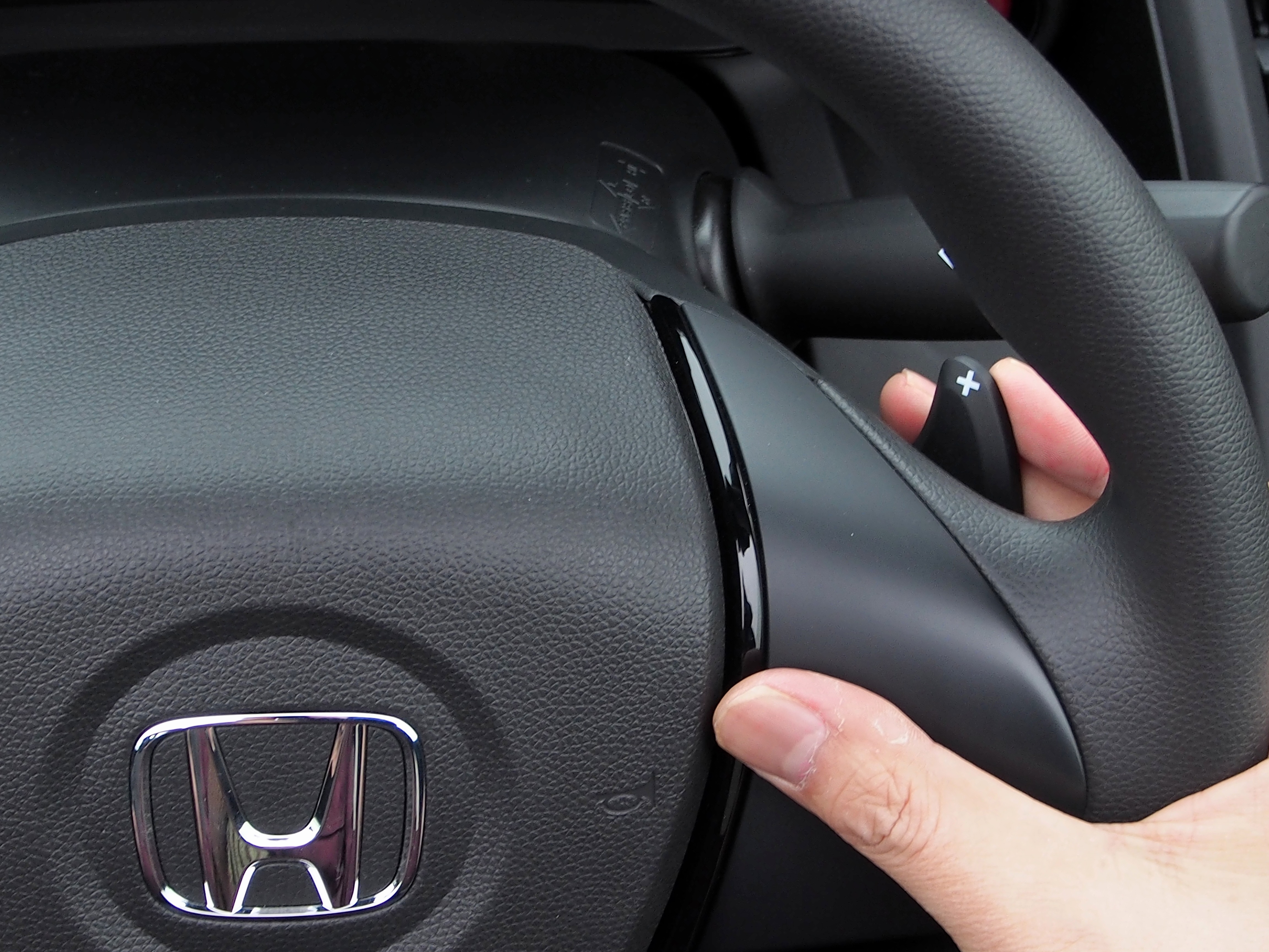 CVT車にはパドルシフトが備わります。POWERスイッチをオンにしてパドルシフトを駆使するとCVTでもスポーティな走りが存分に楽しめました