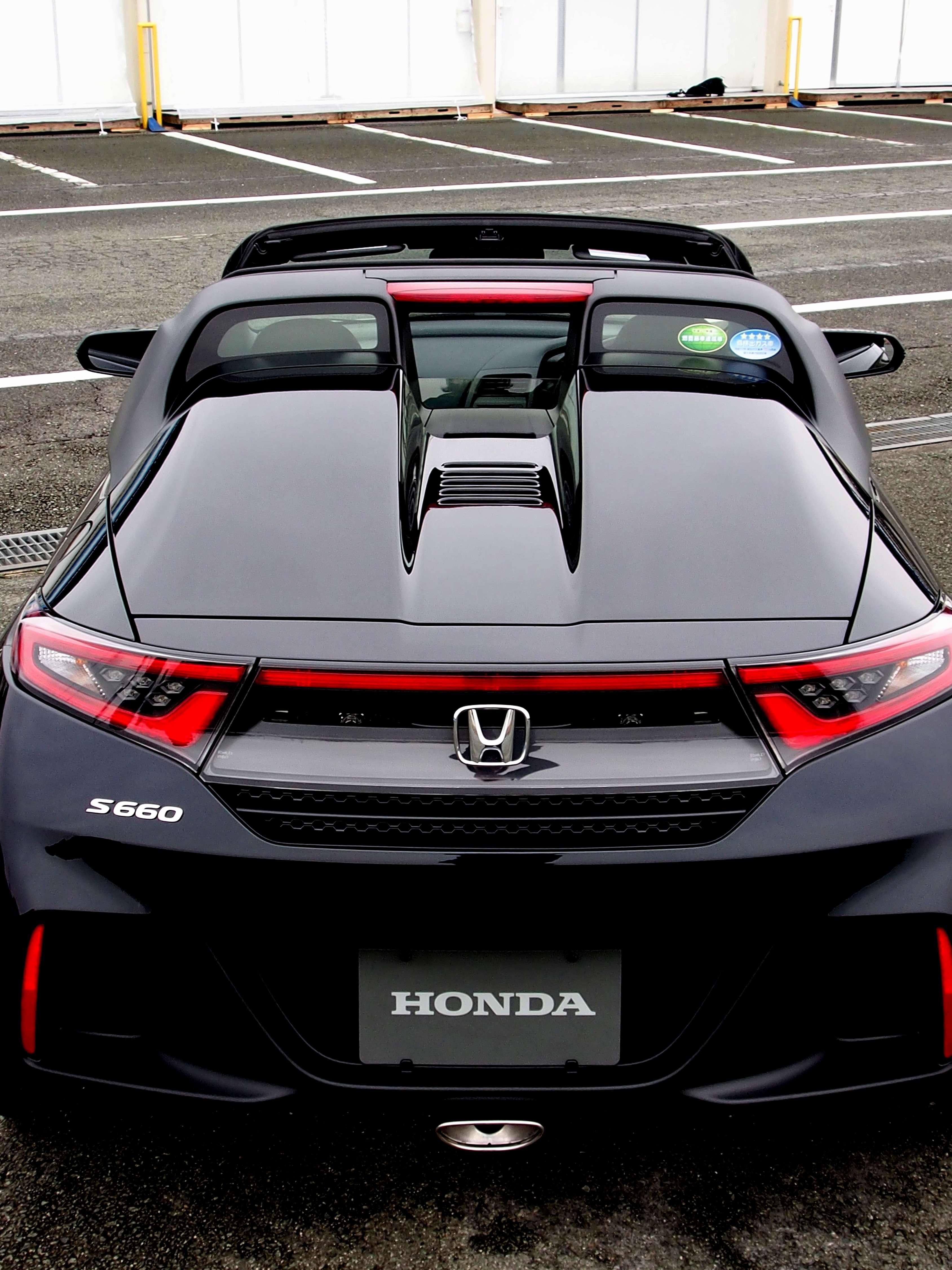 エンジンルーム冷却のために設けられたインレット、駆動力を余すところなく路面に伝えるために採用された前後異径タイヤ……。MRレイアウトならではの普遍的なスタイルはそのままS660の走りを予感させるアイコンになっています。見ているだけでワクワクしてきませんか?