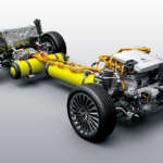 FCVを語る上で無視できない航続距離においても、プラットフォームの刷新が貢献しています。FCVの航続距離を伸ばすには、システムの効率化はもちろんのこと、高圧水素タンクの容量拡大も欠かせません。しかしタンクを大きくすると、その分、車内のスペースが犠牲となり、居住性に悪影響を与える場合も。そうした問題の解決に役立ったのが、RWD車用に開発されたGA-Lプラットフォームでした。