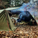 パップ型自体1枚を跳ね上げれば、雨除けとして使えて、その跳ね上げの下で焚き火も可能なのですが、アメリカ軍以外は、生地自体が雨に強い印象がありません。