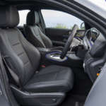 そんなインテリアの仕立ては、ひたすら上質で先進的だ。本革シートを標準装備する上に、インパネの表皮には本革に近い感触の人工レザーが張られる。また、12.3インチの液晶モニターがふたつ並んだコックピットは、見るからに新しさを感じさせるし、パネルの表面処理や緻密なスイッチの作りといった細部の作り込みにも、こだわりを感じさせる。メルセデスの高級セダンと変わらない出来栄えなのだ。