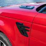また、レンジローバーのリアコンビネーションランプは伝統の縦長だが、“レンスポ”はコンパクトにまとめたタイプとして差別化。さらにフロントフェンダーにエアアウトレット風の処理を加え、走りのイメージをアピールする。