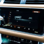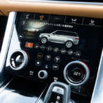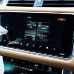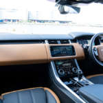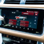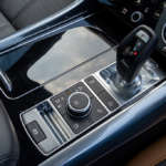 水平基調の線と面で構成されたインテリアはレンジローバーと共通だが、本家が本革や木目をあしらったオーセンティックな仕立てなのに対し、“レンスポ”はピアノブラックとシルバーのコントラストを際立たせたモダンな味つけとしている。