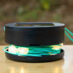エムパワードといえば、空気で円柱形に膨らますソーラー充電式LEDライトシリーズが有名です。「ストリングライト」はこれまでのエムパワードらしいソーラー充電式LEDライトを畳んだような形で、中のコードを引き出して使います。本体サイズはφ12.7×H5cmで、重量320g。
