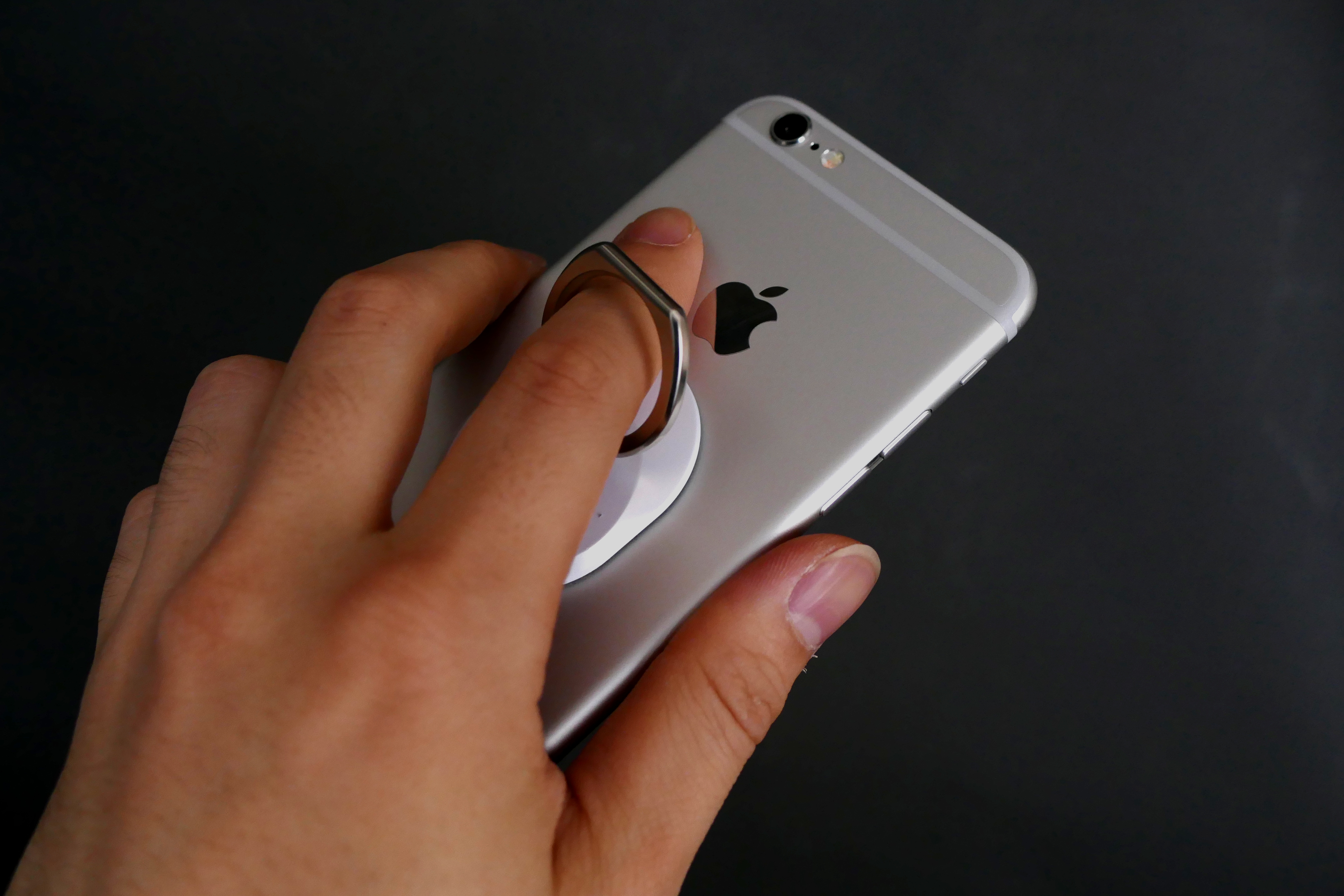 iPhone SEの良いところは、片手でぐっと握れるサイズ感。操作する際には画面全体に手が届きます。一方、iPhone 6sは手のサイズによっては、片手で扱いにくいと感じることもあります。その場合には、リングなどのアクセサリーを使うと、片手でも使いやすくなります。