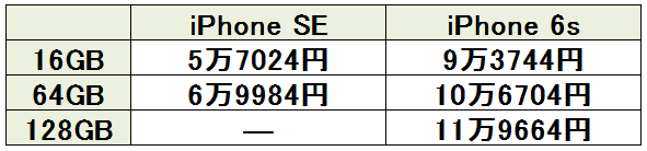 一部のスペックを抑えた分、本体価格が安くなっていることもiPhone SEの特徴です。Apple Storeで購入する場合を比べると、約3万7000円(税込相当)の差があります。