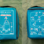 ソフトケースの前面(画像左)には「キャンプ ウッドストーブ MH500」のサイズ、裏側(画像右)には使い方、消火の手順、注意事項がイラストで記されています。注意事項の上2コマが今ひとつわかりづらいですが、どうやら「焚き火OKの場所」で使い、乾燥など「焚き火禁止」の看板がある所では使用禁止を意味しているよう。