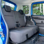 そんな新型ソリオに触れてみてまず驚くのは、リアシートの広さだ。フロントシートまでの間隔は大型セダン級どころか、それ以上。オトナが足を組んで座れるほどのスペースが確保されている。