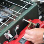また、収納時の置き方には配慮が必要です。ハンドル側を下にするとジェネレーター、縦置きするとミキシング部や燃料タンクのポンピングノブに負荷がかかります。使うときと同じように置くか、ハンドルを上にして収納。あえて縦置きにするときは必ず雑巾などで燃料タンクを固定し、燃料タンク側(サブバーナー側)を下にします。