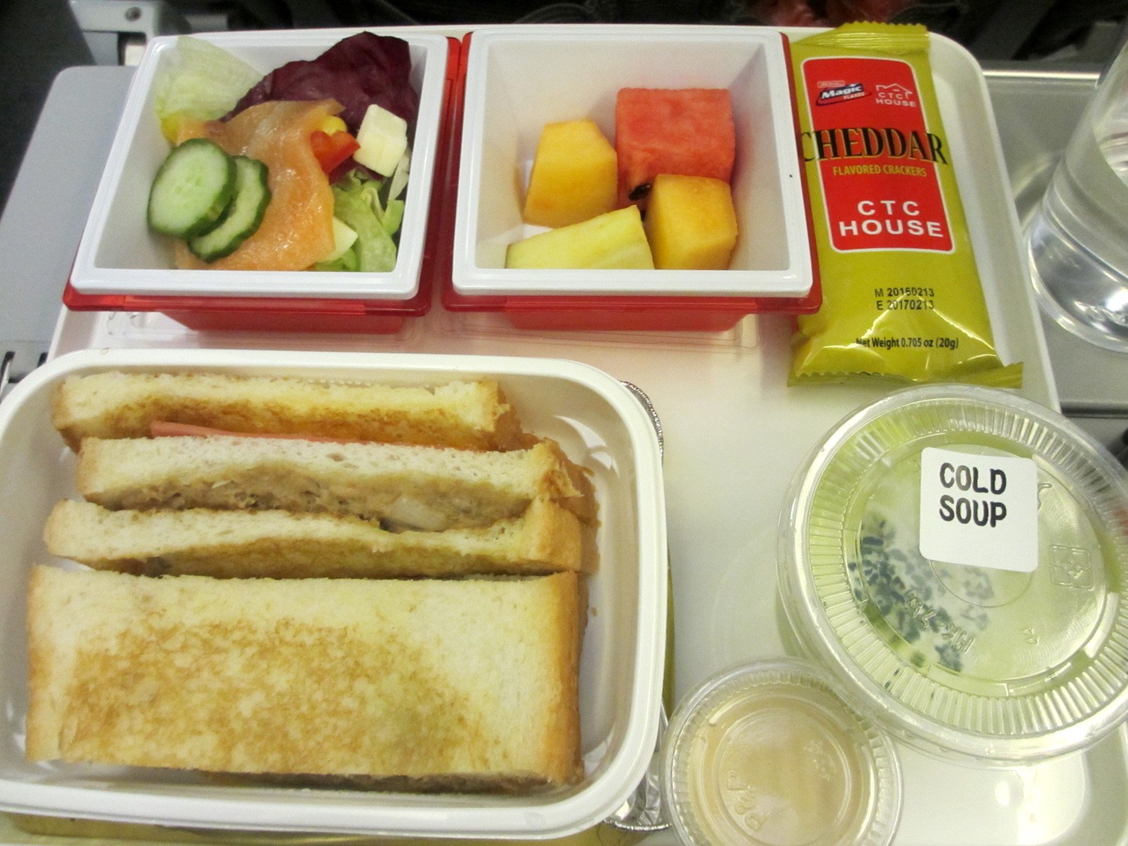 離陸から約1時間で食事とドリンクのサービスが始まりました。