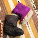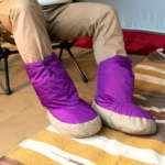 これを履いて寝袋で寝た時に特にありがたさを実感できました。最も寒くなる明け方の時間帯に足が寒くて起きてしまうということはキャンプではよくあることだと思うのですが、これを履いていたおかげで朝まで快眠。手軽に持ち運べて、足の冷えを防いでくれるテントシューズ、オススメです。