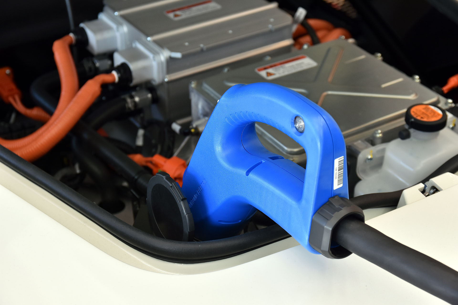 充電ケーブルの接続口はモーターユニット類が収まるリアハッチ内にありました