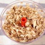 ▲取っ手を引くと中の刃が回転する。20回ほど取っ手を引くと、きのこが細かいみじん切りになった